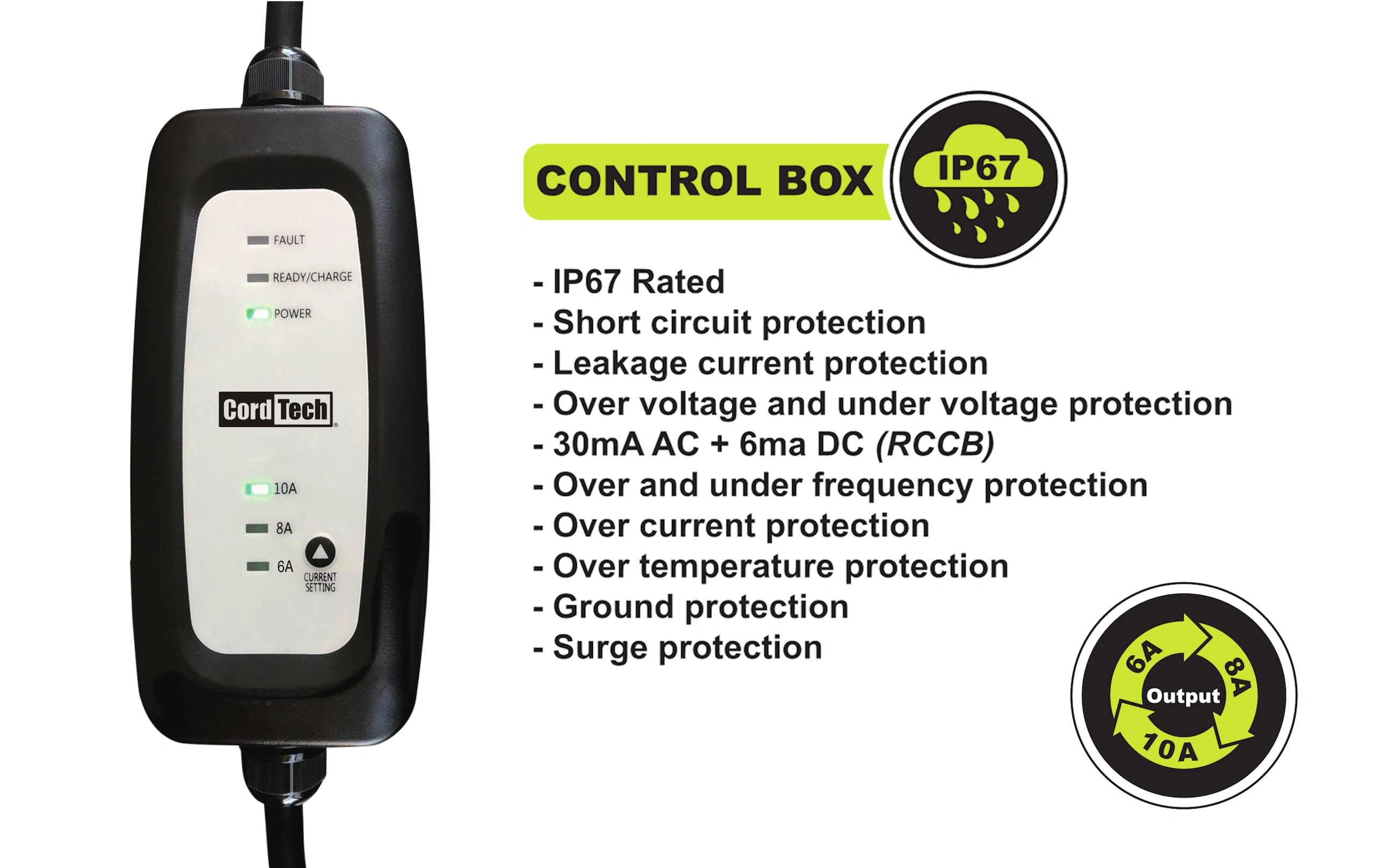 Includes variable output from 6 Amps though to 10 Amps, adjustable at the push of a button.